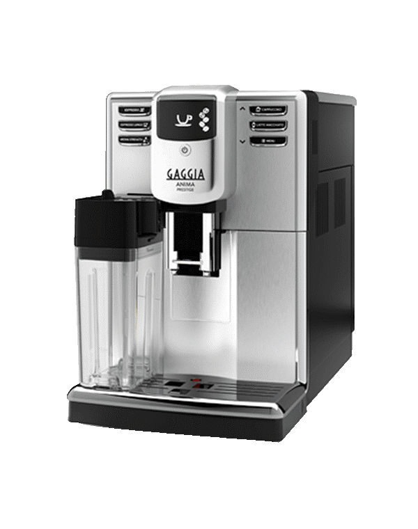 A machine that commands attention, stainless steel coated body. The machine is a one-touch cappuccino and offers beverage options like espresso, long black and latte machiatto. A sleek model beautifully designed by Gaggia.