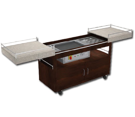 A compact portable design with inbuilt temperature controls to adjust the heat for Live cooking applications.